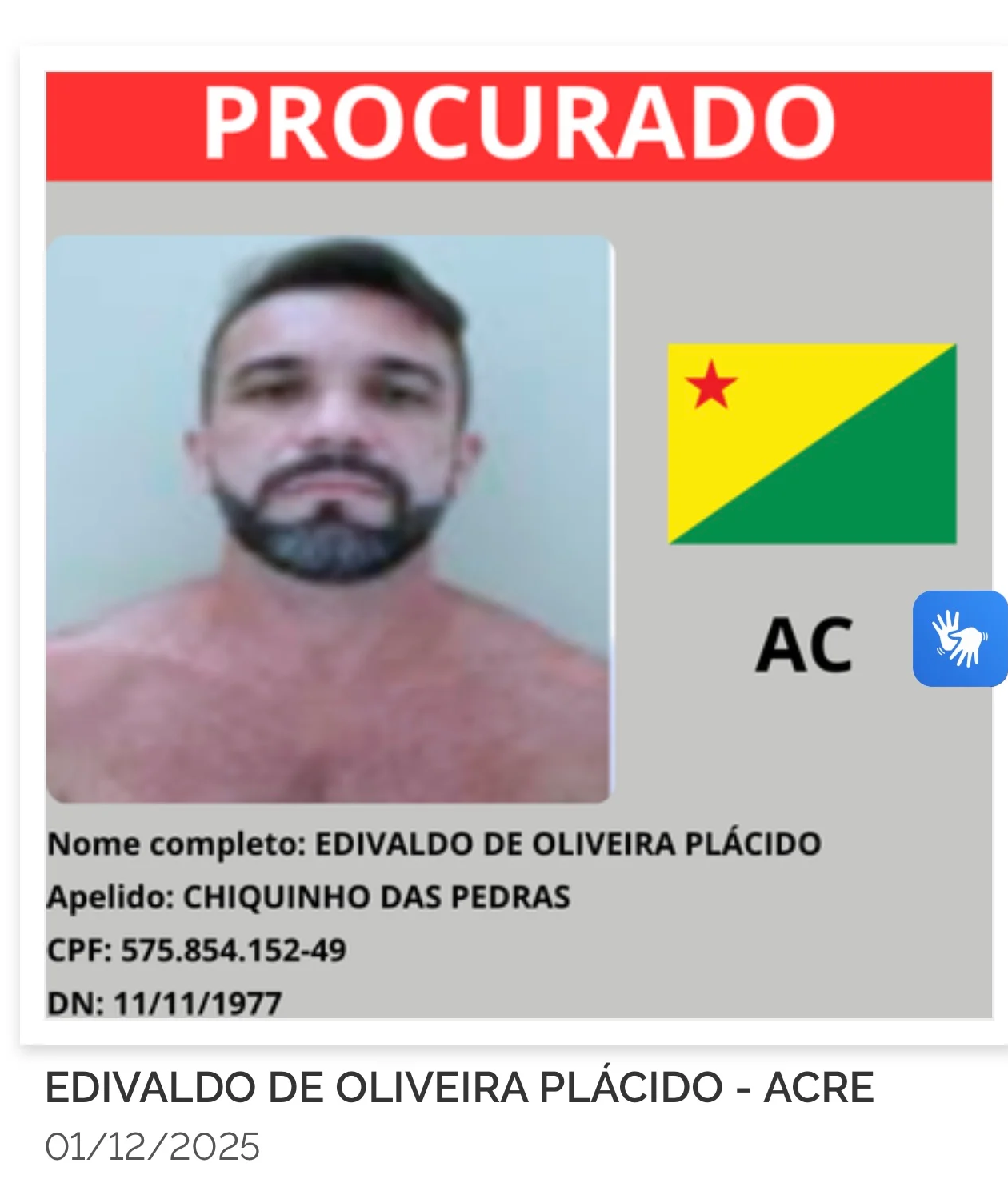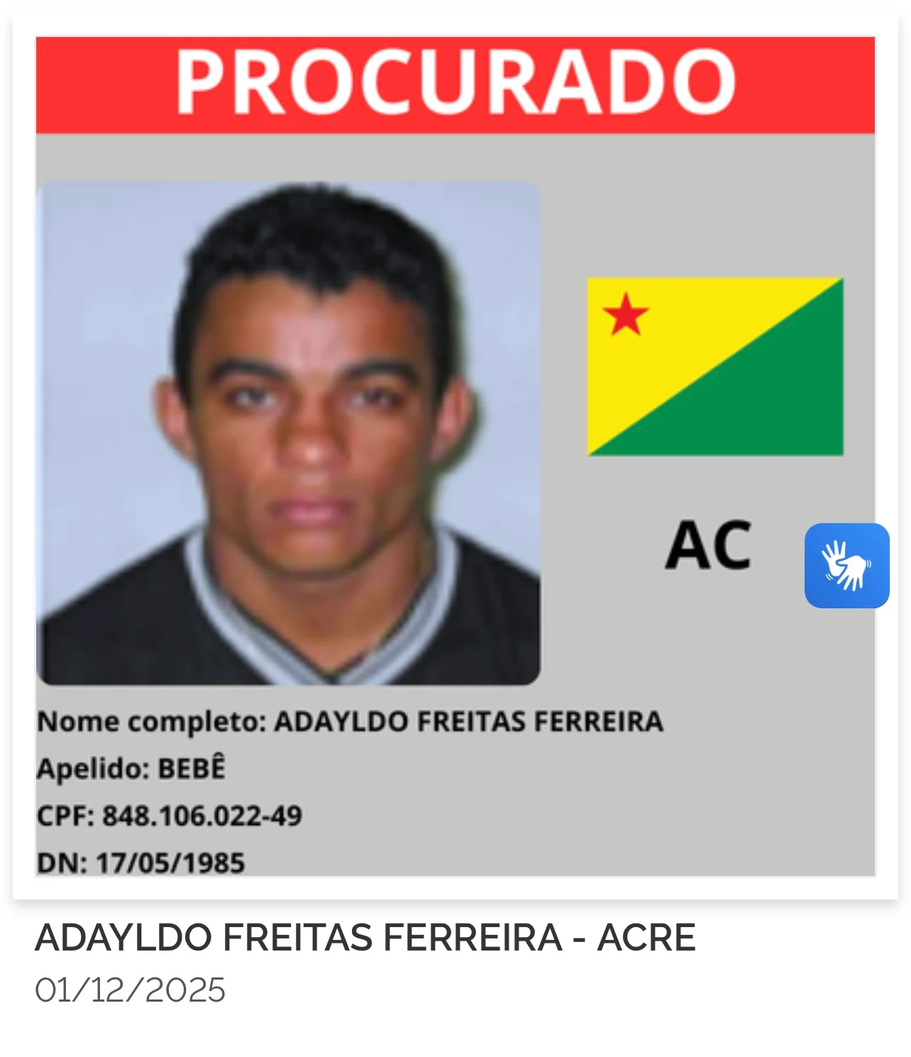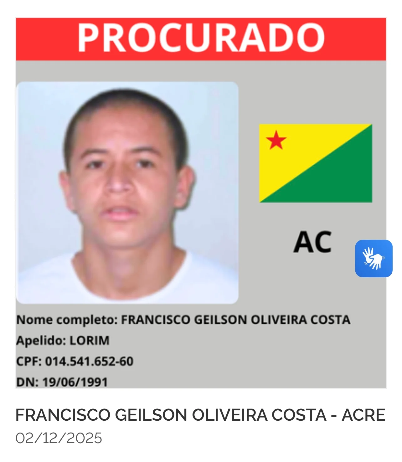 O Ministério da Justiça e Segurança Pública lançou nesta segunda-feira (8) o site gov.br/captura, que reúne a lista dos 216 criminosos mais procurados do país. Cada estado indicou oito alvos prioritários, o que inclui também o Acre, cujos oito foragidos agora aparecem entre os nomes monitorados nacionalmente.