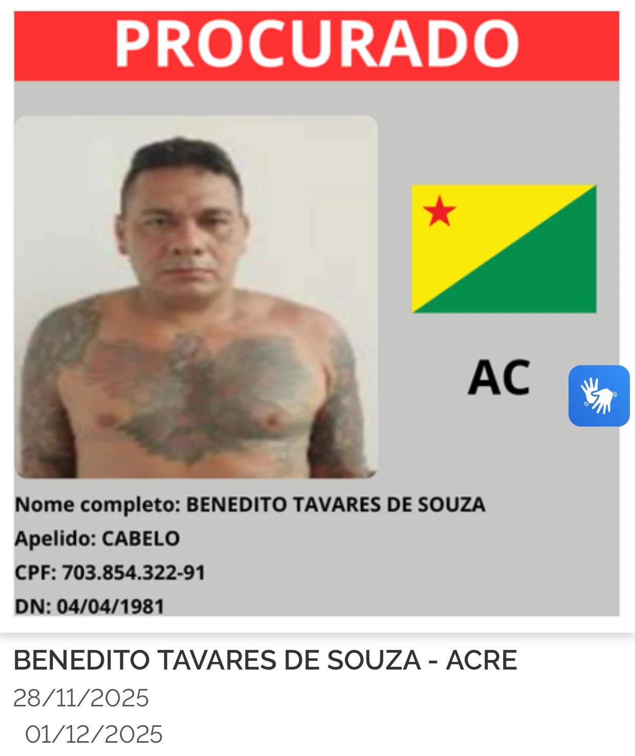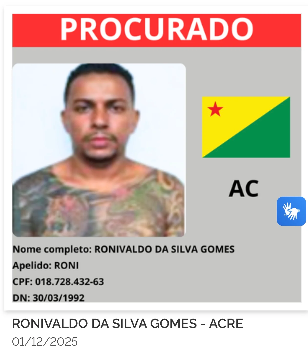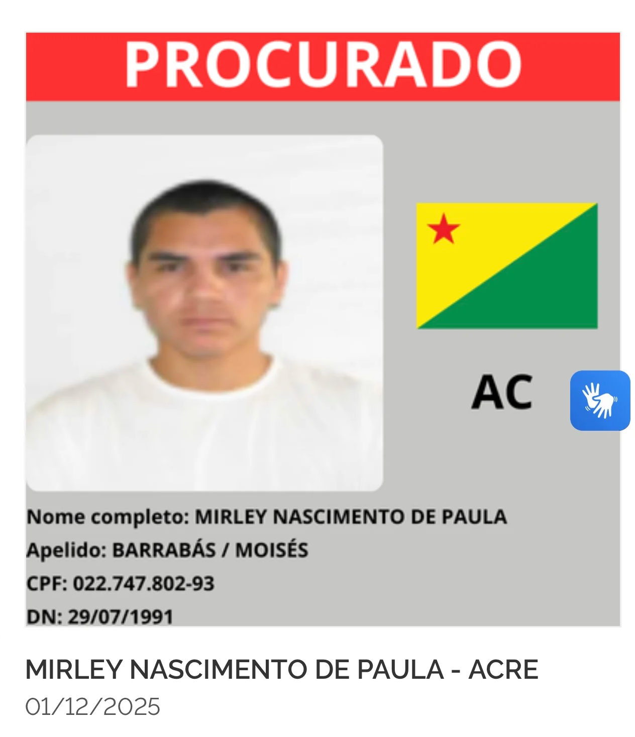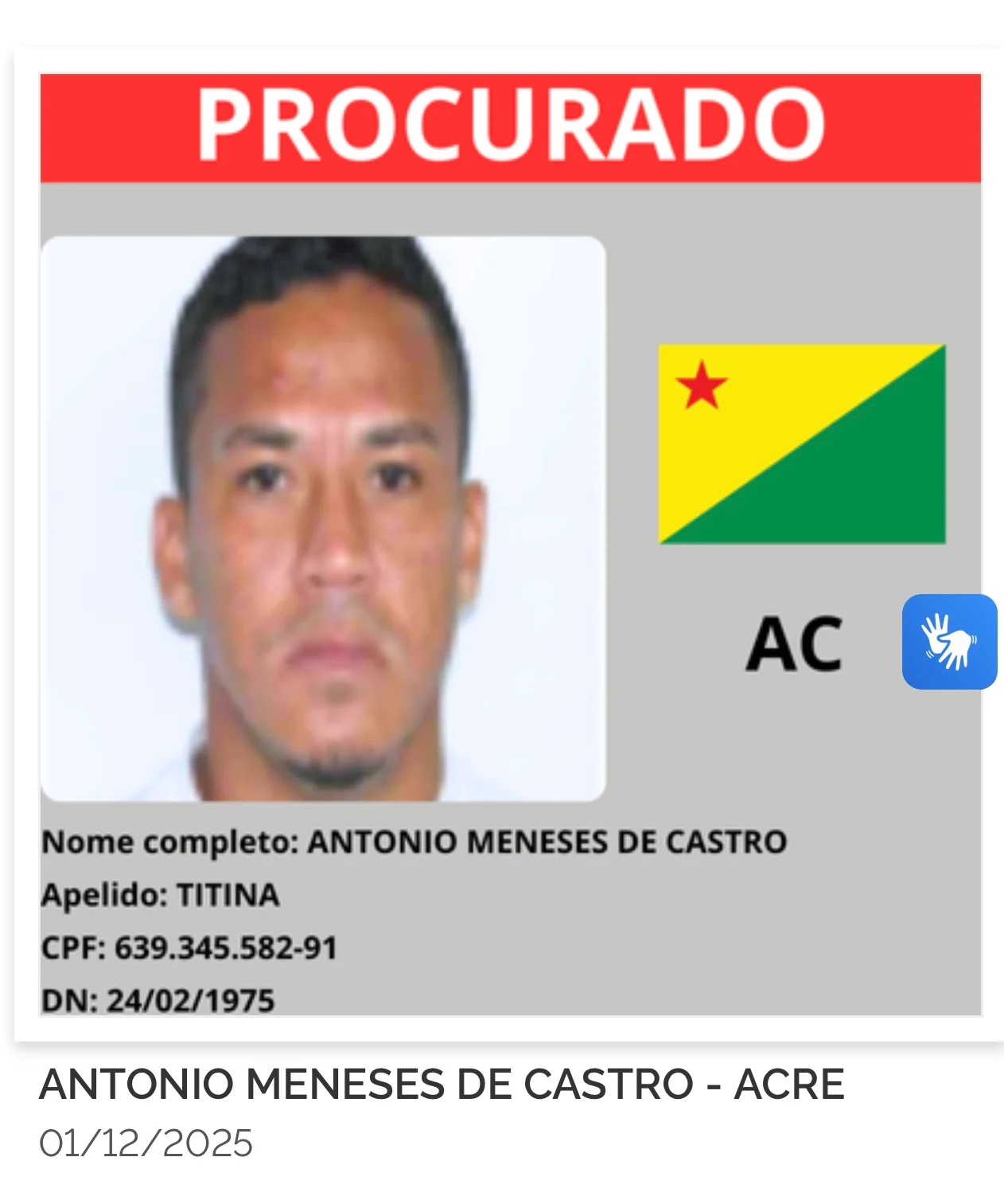 O Ministério da Justiça e Segurança Pública lançou nesta segunda-feira (8) o site gov.br/captura, que reúne a lista dos 216 criminosos mais procurados do país. Cada estado indicou oito alvos prioritários, o que inclui também o Acre, cujos oito foragidos agora aparecem entre os nomes monitorados nacionalmente.