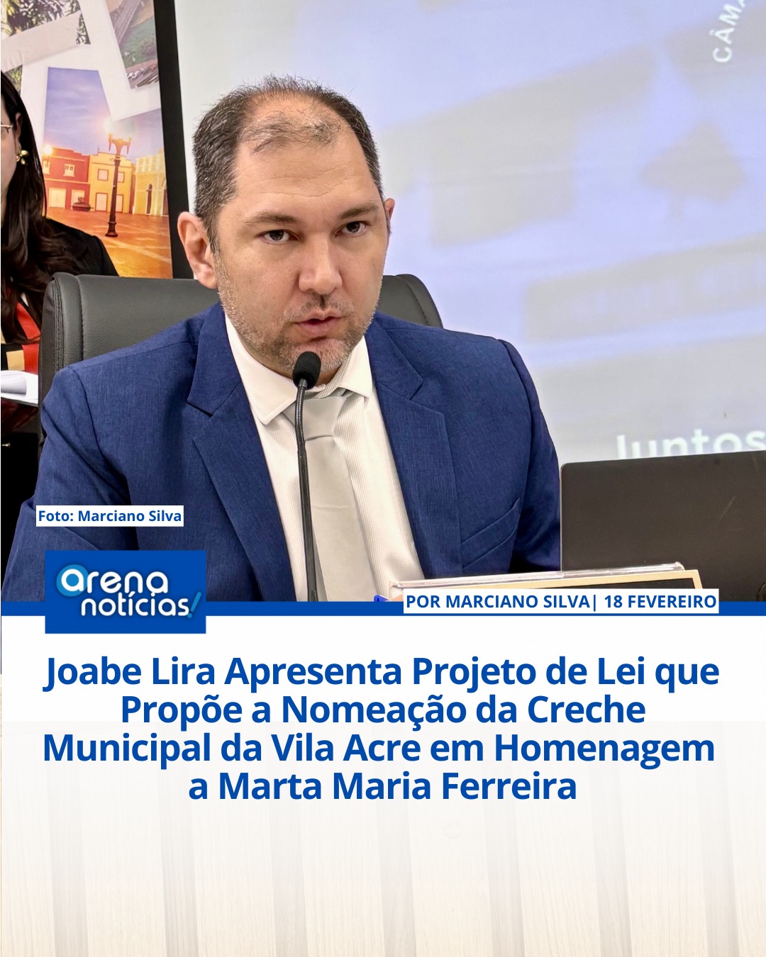 Joabe Lira apresentou um Projeto de Lei que propõe a nomeação da creche municipal do Bairro Vila Acre como Creche Municipal Marta Maria Ferreira, nesta terça-fe...