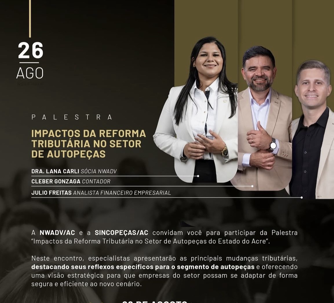 Na última terça-feira, 26 de agosto, o escritório Nelson Wilians Advogados (NWADV/AC) realizou, em parceria com o Sincopéças/AC, uma palestra sobre os impactos ...
