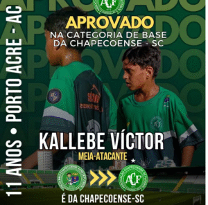Meia acreano de 11 anos é aprovado para integrar a categoria sub-13 da Chapecoense