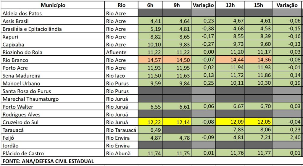 O governo do Acre, por meio da Defesa Civil Estadual e com dados da Agência Nacional de Águas (ANA), divulgou na manhã deste domingo, 25, o boletim atualizado d...