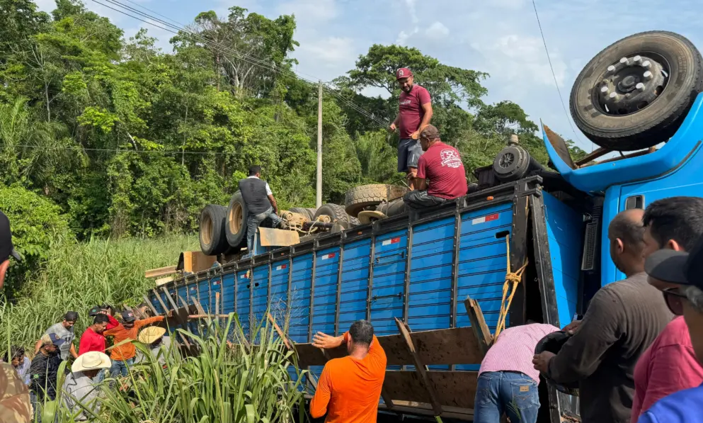 Um acidente envolvendo um caminhão boiadeiro deixou parte da carga de animais em risco próximo ao Distrito Industrial, na rota entre Bujari e Rio Branco.
