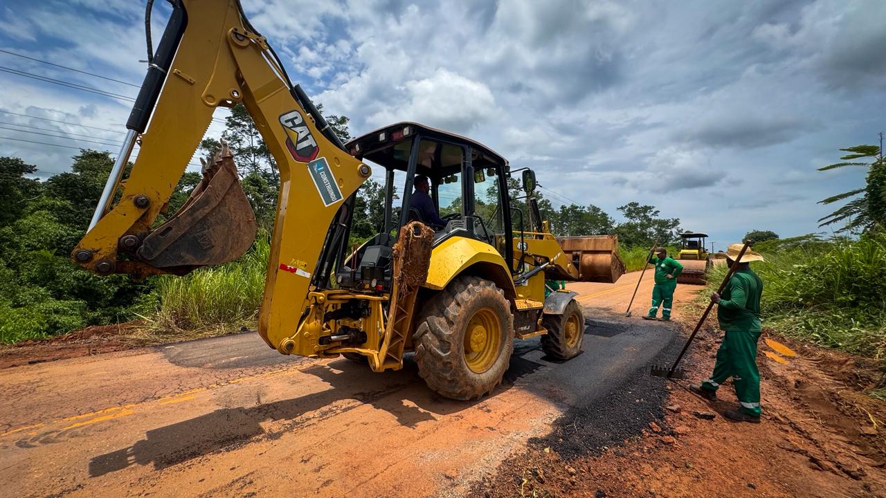 O governo do Acre, por meio do Departamento de Estradas de Rodagem, Infraestrutura Hidroviária e Aeroportuária (Deracre), executa serviços de tapa-buraco no km ...