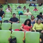 Cumpridores (de frente para a palestrante) e universitários (ao lado) acompanham atentamente o diálogo. Foto: Zayra Amorim