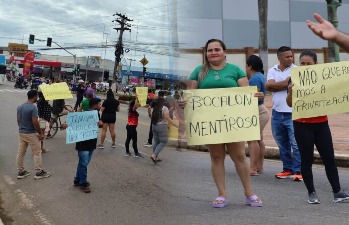 Manifestantes contrários à aprovação do projeto de lei que trata da privatização do mercado Elias Mansour realizaram, na manhã desta terça-feira (16), um protesto em frente ao Terminal Urbano de Rio Branco. Durante o ato, o grupo fechou a entrada do Terminal e bloqueou o tráfego nas avenidas Ceará e Brasil, em duas vias, provocando impacto na circulação de veículos e no transporte coletivo da capital.