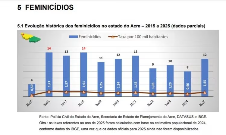 O crime elevou para 13 o número de mulheres mortas no Acre em 2025 em razão de violência baseada no gênero, segundo levantamentos mais recentes da Polícia Civil e do Ministério Público do Estado.