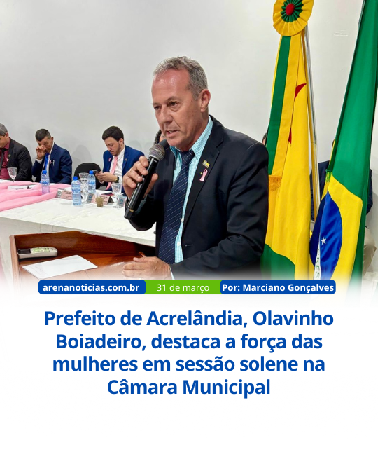 Na noite desta segunda-feira (31), a Câmara Municipal de Acrelândia realizou uma sessão solene em homenagem às mulheres. O evento contou com a presença do prefeito Olavinho Boiadeiro, vereadores e a comunidade, em um momento de reconhecimento e valorização da força feminina.
