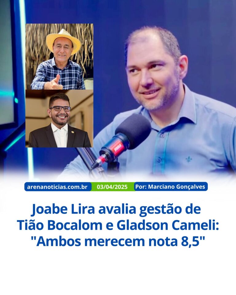 Durante o Podcast Papo Informal com o jornalista Luciano Tavares, na noite desta quarta-feira (3), do presidente da Câmara Municipal de Rio Branco, Joabe Lira, que é especialista em gestão, foi questionado sobre a sua avaliação das administrações do prefeito Tião Bocalom e do governador Gladson Cameli. Ao atribuir uma nota de 0 a 10 para ambos os gestores, Joabe destacou os avanços e os desafios enfrentados pelas gestões municipal e estadual.