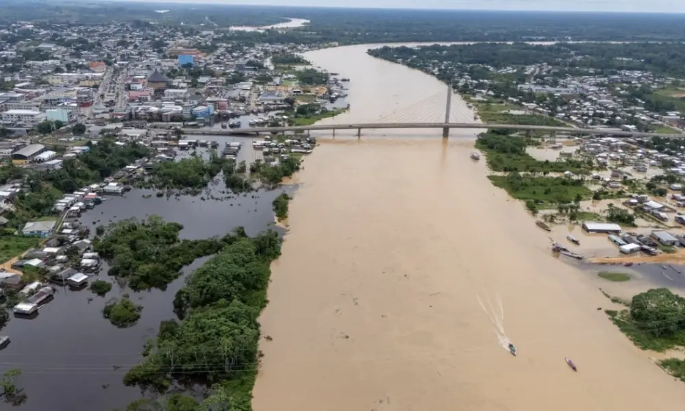 O Rio Juruá, em Cruzeiro do Sul, ultrapassou a cota de alerta nesta segunda-feira, 15, e atingiu a marca de 11,88 metros. Nesse final de semana, o manancial chegou a atingir a marca de 11,96 metros.