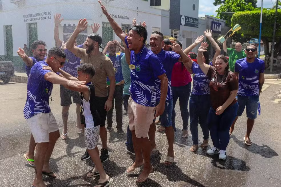 A festa terminou com banho nos atletas e público presente. Cerca de 15 carros com torcedores e apoiadores também acompanharam o trajeto.