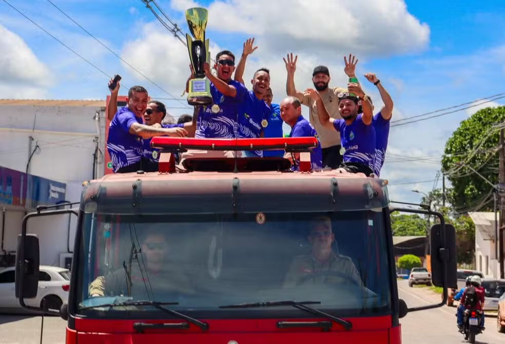 Brasiléia segue em festa. Com a taça erguida, atletas e comissão técnica desfilaram em carro aberto do Corpo de Bombeiros na manhã desta segunda-feira (29), em Brasiléia, no interior do Acre, para celebrar o tetracampeonato acreano de futsal.