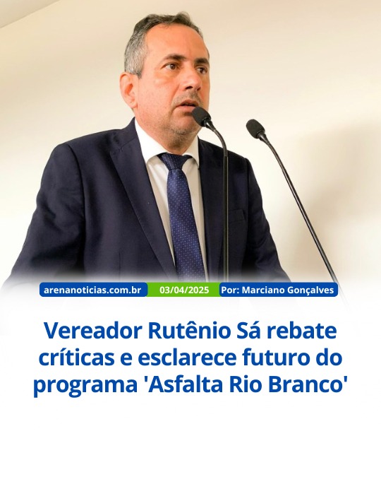 Nesta quinta-feira (3), durante a sessão na Câmara Municipal, o vereador Rutênio Sá utilizou seu tempo na tribuna para responder às críticas sobre o andamento do programa “Asfalta Rio Branco”. Ele esclareceu que os contratos com as empresas responsáveis pela pavimentação estão se encerrando e que uma nova licitação será realizada para dar continuidade ao serviço.